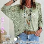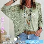 かぎ針編み ゆったり プルオーバー 体型カバー レディース 薄手 送料無料 ニット Vネック ニットトップス セーター 大きいサイズ 紫外線対策 透かし編み 紫外線対策 春 夏服 4色 おしゃれ 冷房対策 S M L サマーニット