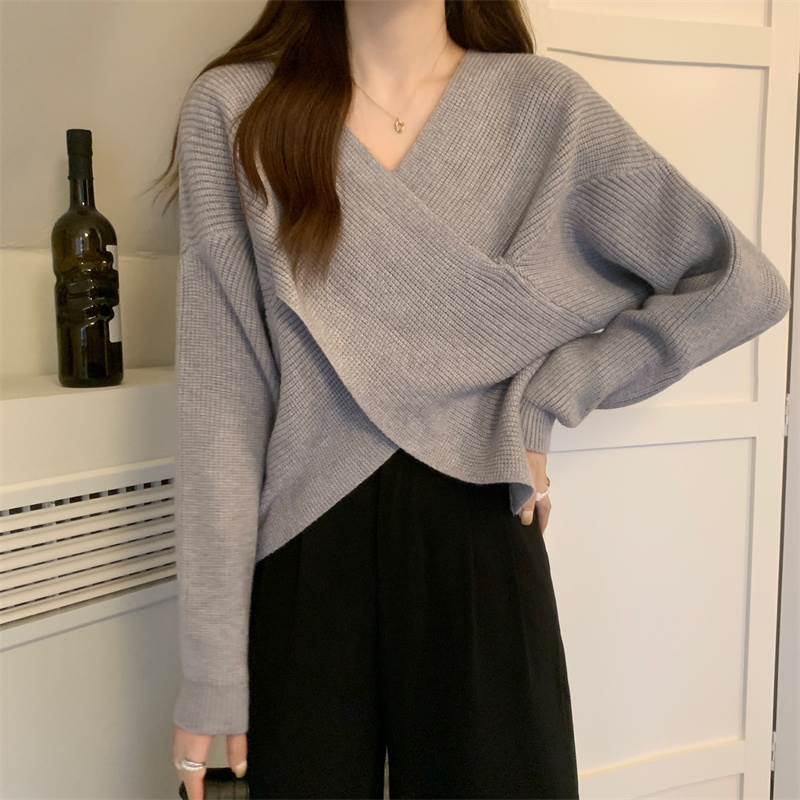 ニット セーター ショート丈カシュクールニットプルオーバー レディース