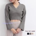 ニット セーター クロップド丈カシュクールシャギーニットプルオーバー レディース
