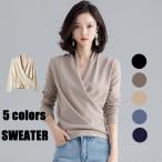 ニット レディース 秋物セーター 長袖 トップス カシュクール プルオーバー 30代 40代 50代 おしゃれ 秋冬