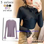 リブニット 長袖 レディース トップス 秋 秋物 ニット リブ ハイネック 長袖ニット ストレッチ フリル セーター おしゃれ ニットトップス カジュアル 無地 プチ