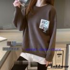 ニットセーター レディース 秋 冬 40代30代20代 セーター ゆったり 体型カバー 長袖 ニットウェア プルオーバー 無地 カジュアル アウター フェイクレイヤード