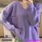 ニットセーター レディース 秋 冬 40代30代20代 セーター ゆったり 体型カバー 長袖 ニットウェア プルオーバー 無地 カジュアル アウター Vネック トップス