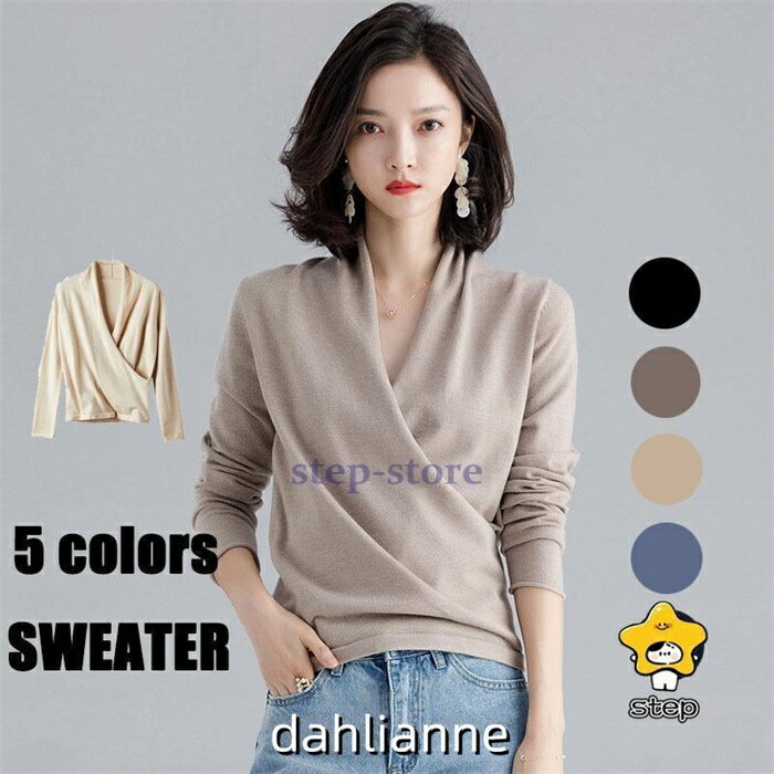 500円OFFクーポン セーター レディース ニット vネック 無地 プルオーバー トップス ゆったり シンプル きれいめ 体型カバー ファッション オフィス 春秋冬 おしゃれ 柔らかい カジュアル ショート丈 カシュクール レイヤード 可愛い 通学 holosbird-goods1