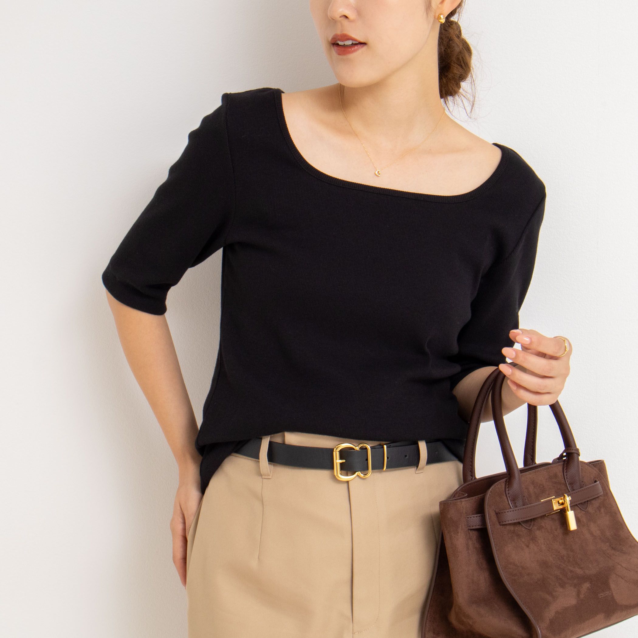 「簡単着こなしで様になる」 Tシャツ リブ トップス レディース きれいめ カットソー 半袖 クロスネック クロスライン プルオーバー 部屋着 伸縮性 薄手 黒 白 春 夏