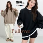 スウェット 裏起毛カットソープルオーバー ボリューム トップス レディース 長袖 プルオーバー 体型カバー レイヤード風 重ね着風 カジュアル シンプル 防寒