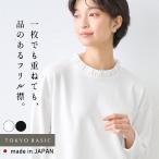 レディース トップス 長袖 コットン100% フリル襟 カットソー プルオーバー 日本製 フォーマル インナー 重ね着 オフィス