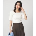 tシャツ ブライトリブ スクエアネック 5分袖 プルオーバー カットソー レディース
