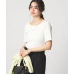 tシャツ ブライトリブ デコルテ フレンチスリーブ プルオーバー カットソー レディース