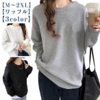 トップス レディース メンズ ワッフル 長袖 安い 人気 カットソー ゆったり カジュアル プルオーバー クルーネック 長袖 tシャツ おしゃれ 体型カバー