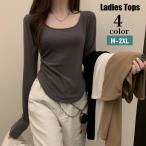カットソー 長袖 レディース トップス Uネック 薄手 ラウンドカット プルオーバー 無地 ソリッドカラー シンプル 婦人服 女性用 大きいサイズあり