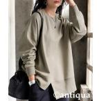 tシャツ atONE ワッフルカットソー テールヘム サイドスリット プルオーバー 長袖 レディース
