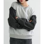 tシャツ こなれレイヤード風!袖デニム切替プリントプルオーバー レディース
