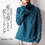 otonaオリジナル トップス カットソー レディース ブルー 長袖 プルオーバー ハイネック 一枚で主役になれる花シャーリング OTONA 40代 50代 60代