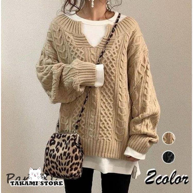 ニットセーター レディース 秋冬 40代 長袖トップス キーネックニットトップス 無地 ケーブル編み ニットソー ショット丈ゆったりプルオーバー