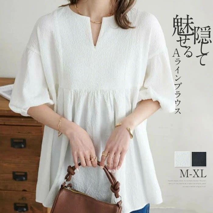 tシャツ カットソー レディース 7分袖 春 秋 キーネック Tシャツ プルオーバー Aライン 大人 カジュアル 無地 ゆったり おしゃれ 体型カバー 大きいサイズ シンプル ゆるっと きれいめ 春秋 着回し 30代 40代 50代 ブラック 白