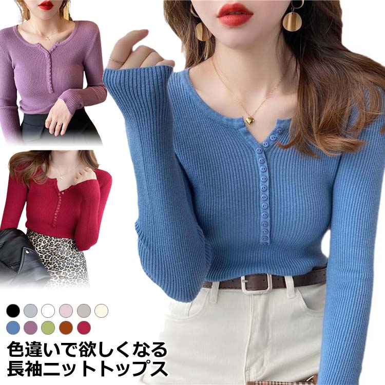 ニット トップス キーネック ロンT レディース 長袖ニット Vネック ボタン セーター ニットセーター フィット vネック 長袖ニット 長袖 暖かい チクチクしない オフィス オフィスカジュアル 秋冬 春 プルオーバー