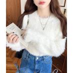 ニット セーター クルーネックショート丈ロングフェザーニットプルオーバー レディース