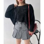 ニット セーター 「至福のカヌレニット」ラメフリル配色リブボリュームスリーブプルオーバー レディース