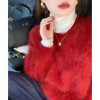 ニット セーター フェザーヤーンクルーネックプルオーバー レディース