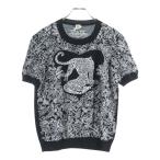 HERMES エルメス ジャングル ラブ カシミヤ アニマル ジャガード柄 クルーネック プルオーバー 半袖ニット セーター ブラック レディース