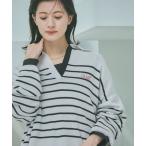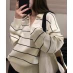 ニット セーター 襟付きスキッパネックボーダーニットプルオーバー レディース