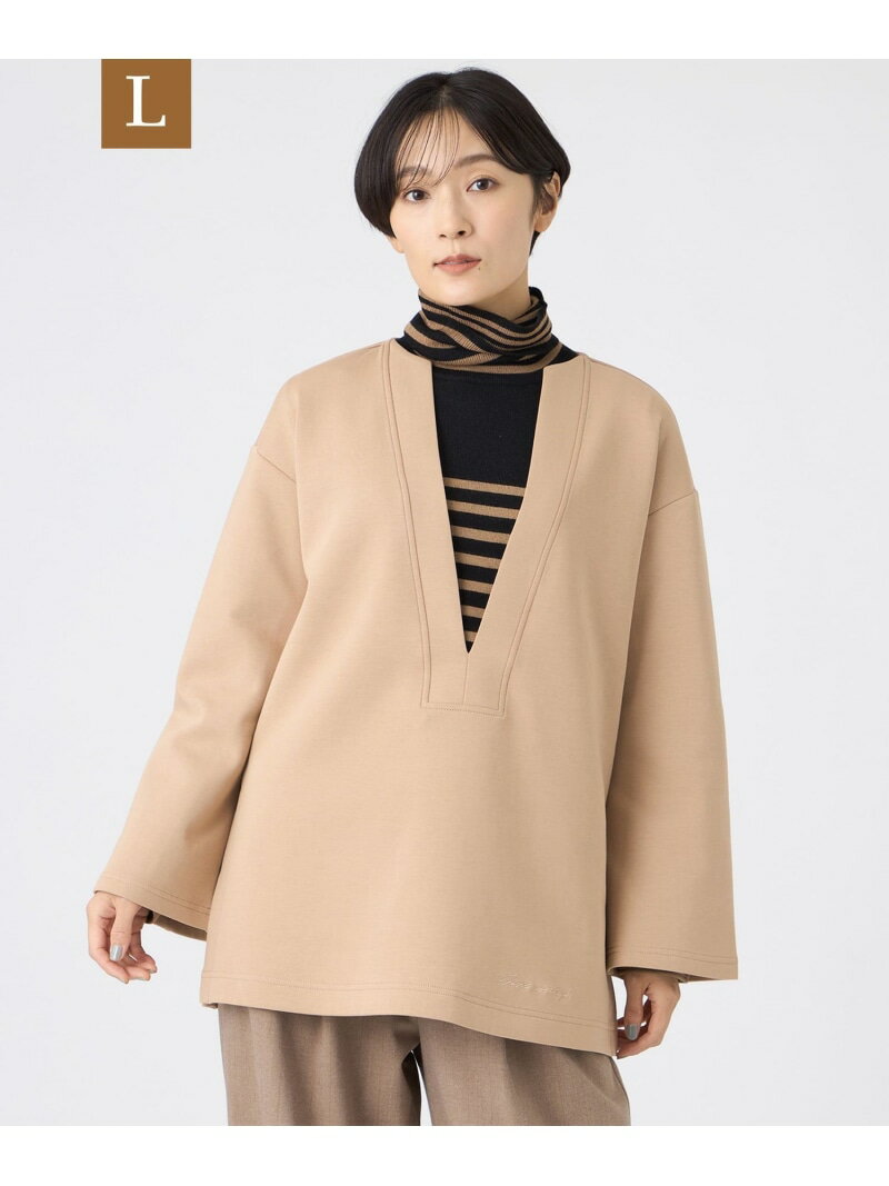【L】【ウォッシャブル】ライトダンボールスキッパープルオーバー EVEX by KRIZIA サンヨー エルサイズ トップス カットソー・Tシャツ ブラック ベージュ【送料無料】[Rakuten Fashion]