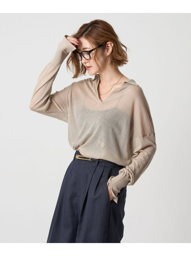 【SALE/10%OFF】conte <conte>シアー スキッパー プルオーバーニット ユナイテッドアローズ トップス ニット グレー ネイビー ベージュ【送料無料】