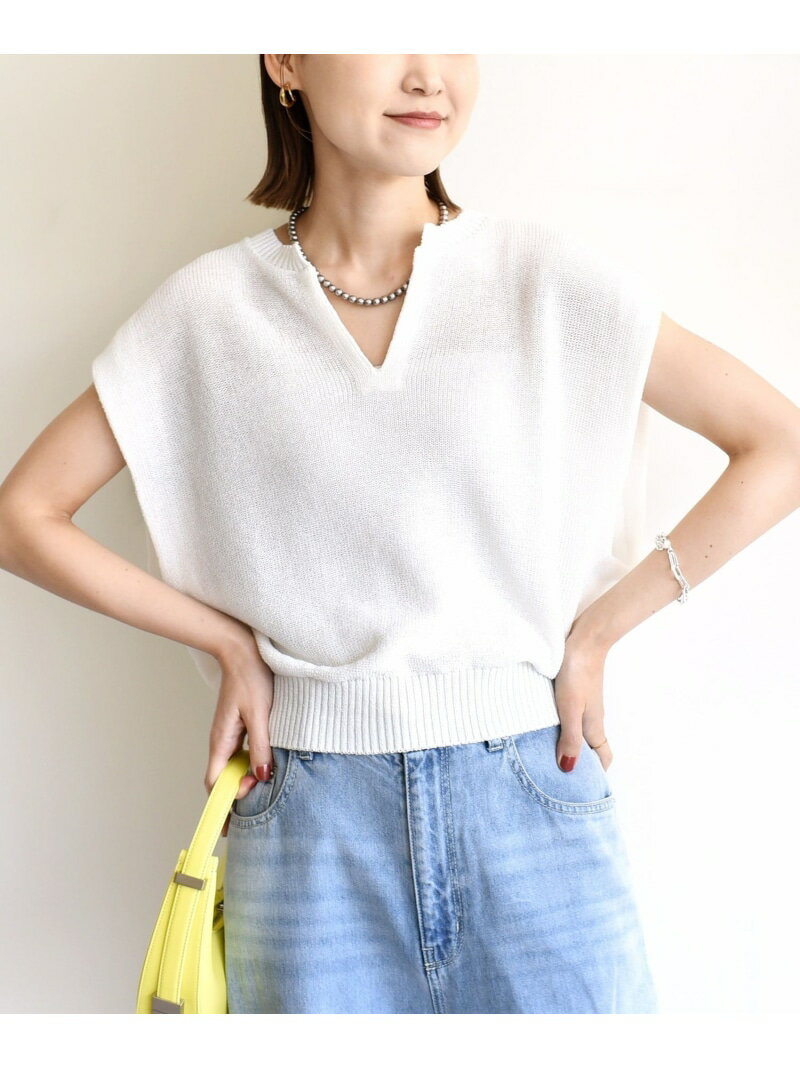 【SALE/10%OFF】UNITED ARROWS green label relaxing 【WEB限定】<at ease>スキッパー プルオーバー ニット ウォッシャブル ユナイテッドアローズ グリーンレーベルリラクシング トップス ニット ホワイト ベージュ グレー【送料無料】