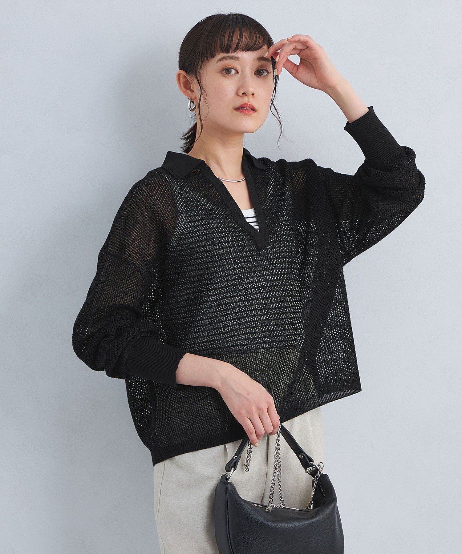【SALE/30%OFF】メッシュ スキッパー ニット プルオーバー -ウォッシャブル- UNITED ARROWS green label relaxing ユナイテッドアローズ グリーンレーベルリラクシング トップス ニット ブルー ベージュ レッド ホワイト ブラック【RBA_E】【送料無料】[Rakuten Fashion]