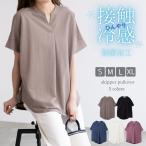 ブラウス Tシャツ レディース 半袖 5分袖 接触冷感 スキッパーカラー 無地 トップス
