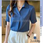 ブラウス 通勤 きれいめ 大人 ス 春夏 レディースファッション おしゃれ シフォンシャツ 襟付き 半袖 無地 プルオーバー 落ち感