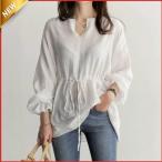 レディース シャツ ス ブラウス 長袖 オフィス 春 夏 40代 白 きれいめ 大きいサイズ 体型カバー ゆったり フリル ウエストマーク