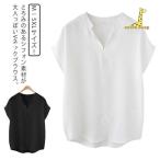 M-5XLサイズスキッパー シフォンブラウス スキッパーシャツ 半袖 シャツ ブラウス ス Vネック プルオーバー シフォン とろみシャツ 大