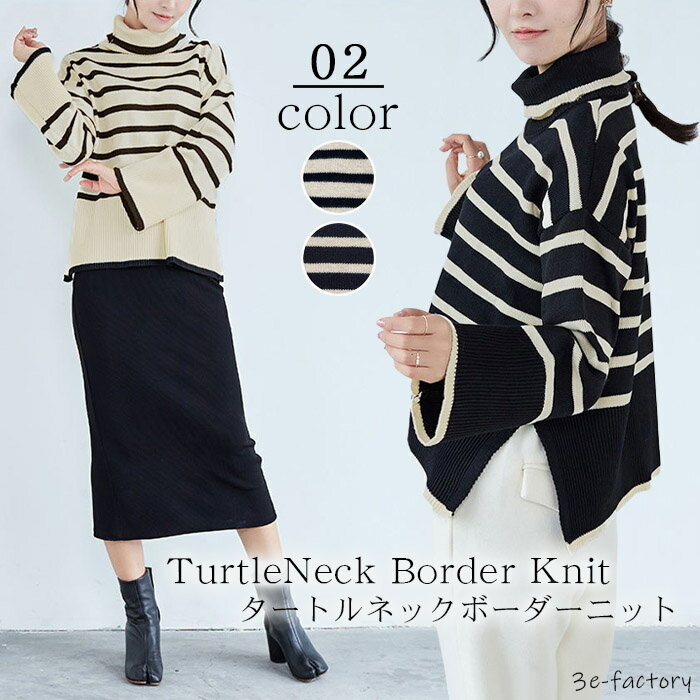 【セール10%OFFで3,132円】 タートルネックボーダーニット ニット レディース ボーダー タートルネック ハイネック トップス セーター サイドスリット プルオーバー 長袖 オーバーサイズ シンプル カジュアル 可愛い かわいい きれいめ おしゃれ 大人 冬 冬物