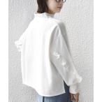 tシャツ 「WEB限定」「手洗い可能」モックネック 袖 フリル デザイン ミニ 裏毛 プルオーバー レディース