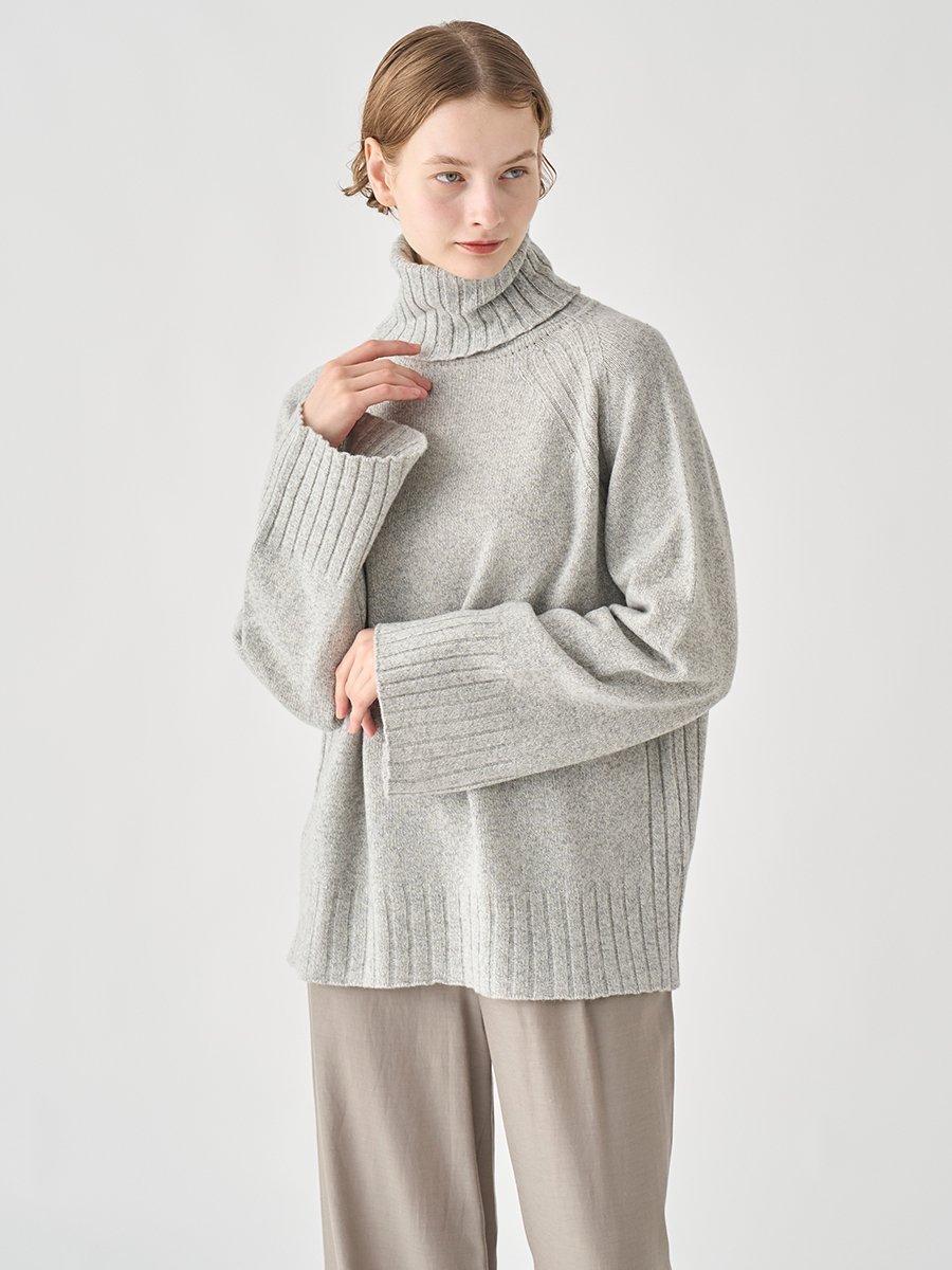 ニット セーター 「Eco Cashmere」カシミヤ混 オーバーサイズタートルネック長袖ニットプルオーバー レディース