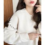 ニット セーター 「累計販売枚数2万枚突破!」 配色ハンドステッチニットプルオーバー レディース