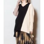 ニット セーター 畦編配色レイヤードプルオーバー レディース