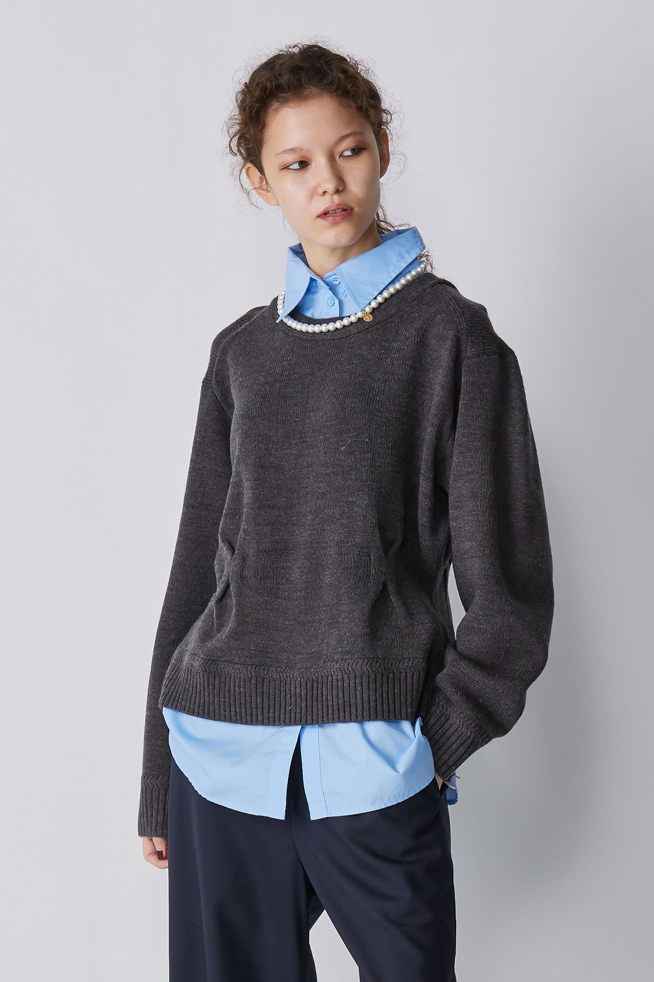 MUVEIL(ミュベール)/パールネックレス付きシャツニットプルオーバー