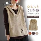 ニットベスト レディース パーカー フード付き チョッキ プルオーバー ベスト Vネック ジレ セーター 秋コーデ ノースリーブ レイヤード 重ね着