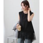 tシャツ レースヘムノースリーブプルオーバー レディース