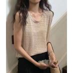tシャツ 透か編み ノースリーブ プルオーバー レディース