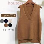 ニットベスト レディース チョッキ トップス Vネック ノースリーブ ゆったり プルオーバー ベスト セーター 秋コーデ 通学 通勤 オフィス