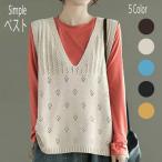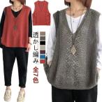 ベスト レディース 透かし編み ニットベスト 重ね着 ゆったり おしゃれ チョッキ プルオーバー トップス vネック ゆったり ノースリーブ 無地 春 秋 冬