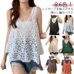 プルオーバー ノースリーブ クロシェ編み 夏 ベスト トップス 春 無地 レディース 春 夏 透かし編み カジュアル ベスト サマー プルオーバー 重