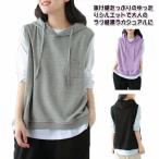重ね着 レディース ベスト プルオーバー 夏 トップス パーカー スウェット フード付き ベスト パーカーベスト ノースリーブ レイヤード ゆったり