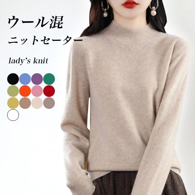 【楽天スーパーSALE 50%OFF】ニットセーター レディース ウール混 ニット ウールセーター ハーフハイネック セーター 暖かい 秋 冬 トップス プルオーバー 長袖 ウール プレゼント