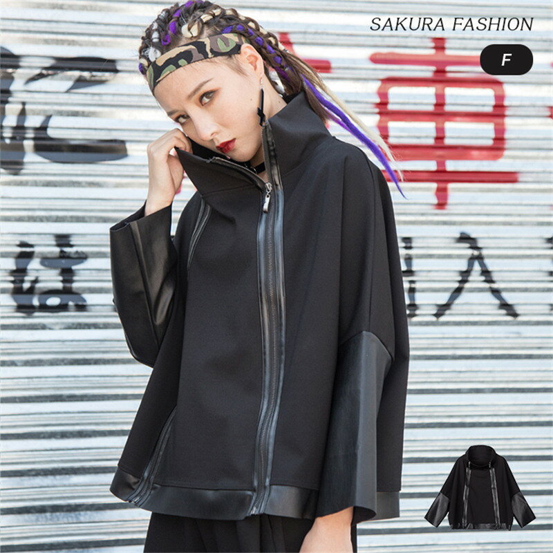 【15%OFFクーポンで3,366円:3点で】プルオーバー カットソー スウェット レディース ハイネック トップス 長袖 ダブルシップ 重ね着 きれいめ ゆったり 春秋 異素材 フェイクレザー 個性派 ハイネックカットソー