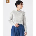 tシャツ 「L」「ウォッシャブル」ハーフミラノリブボーダーハイネックプルオーバー レディース